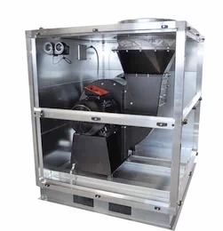 - Die Gehäuse bestehen dabei aus einer Rahmenkonstruktion mit vier Schenkeln und sind für eine Leistung von 0,55 bis 30 kW/h beziehungsweise Volumenströme von 2.000 bis 46.000 m3/h ausgelegt.