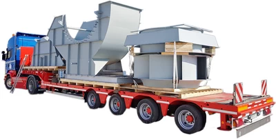 - Die Abmessungen des kompletten Ventilators beträgt 2,70m x 1,94m x 1,40m.