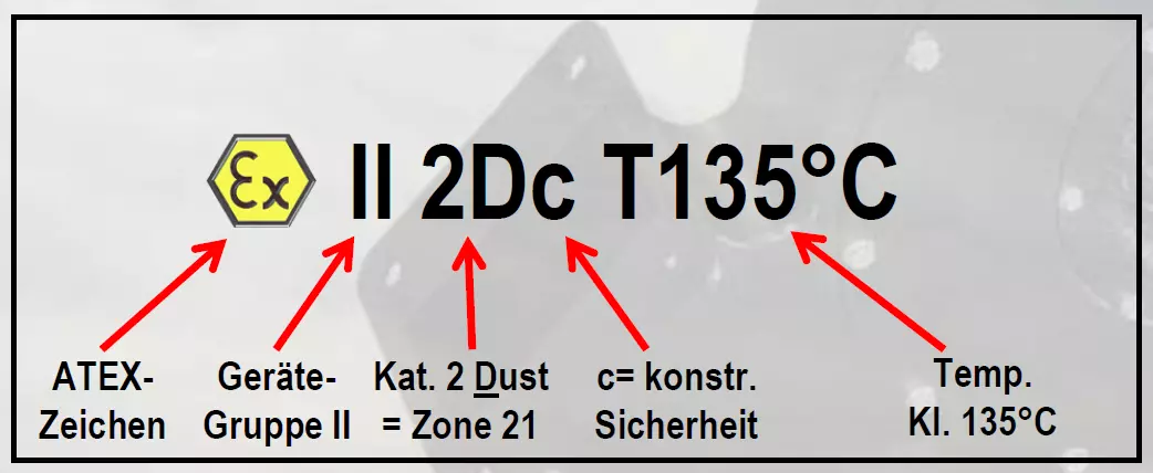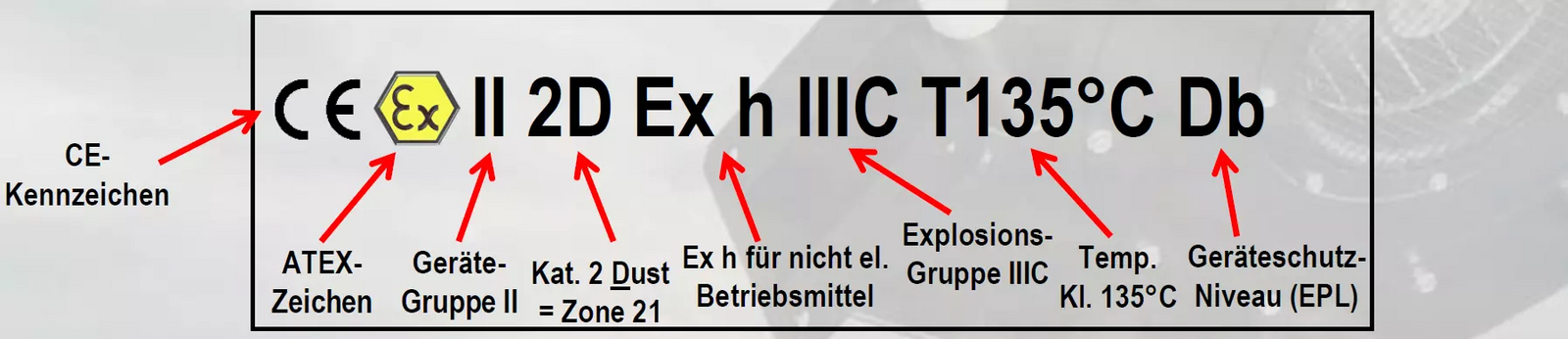 - Am Ende wird das " Geräteschutzniveau " ergänzt: Db für Zone 21 = Kat. 2D und Dc für Zone 22 = Kat. 3D