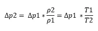 Hinweis: der Volumenstrom bleibt unabhängig von der Dichte konstant, die Druckänderung betrifft statischen-, dynamischen- und Totaldruck! Temperatur in K!