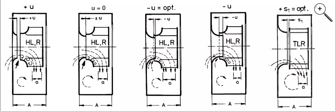 Spiralgehäuse wandeln dynamischen in statischen Druck um. Der Öffnungswinkel von Spiralgehäusen sollte bei maximal 7° liegen, da es bei größeren Öffnungswinkeln zu Strömungsablösungen kommen kann. Je größer die Druckerhöhung eines Ventilators, desto kleiner muss der Spiralwinkel des Gehäuses ausgelegt werden.
